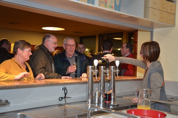 De secretaris Veerle schenkt de champagne. Foto Walter Carels