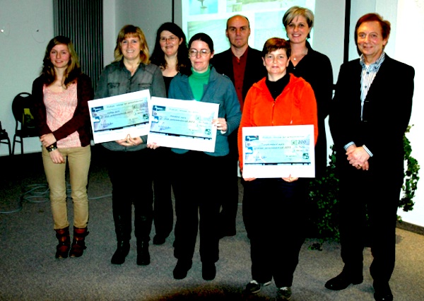 Vlnr : Marie Vermote (muzikale omlijsting), moeder van winnaar derde prijs Jordy Vermote (3e prijs), Nadia Brouckaert (bibliotheekmedewerker), Martine Gouhie (2e prijs), Christophe Coffyn (bibliothecaris), Dymphna Faillie (1e prijs), burgemeester Ann Vanheste, Willy Vandenplassche (voordracht)