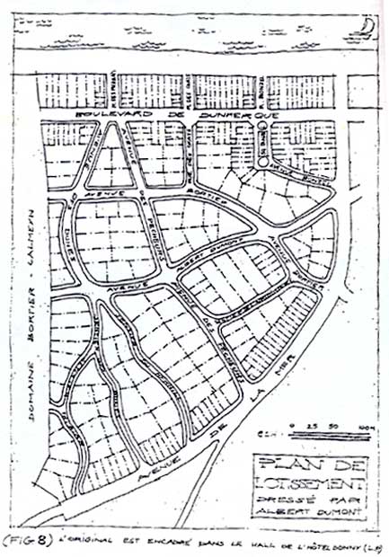 Op 11 januari 1906 heeft de gemeenteraad van Adinkerke, op vraag van Albert Dumont, en kleine uitbreiding van de badplaats richting Frankrijk goedgekeurd op de gronden van Bortier-Calmeyn. (zie hierboven)