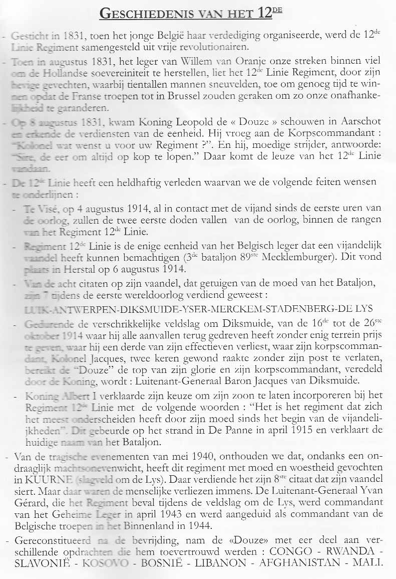 Op de toespraken werd dit geïllustreerd via een zeer mooie brochure waaruit enkele foto’s hier overgenomen. Ook was men zeer fier met de “Geschiedenis van het 12de” Lees>>>