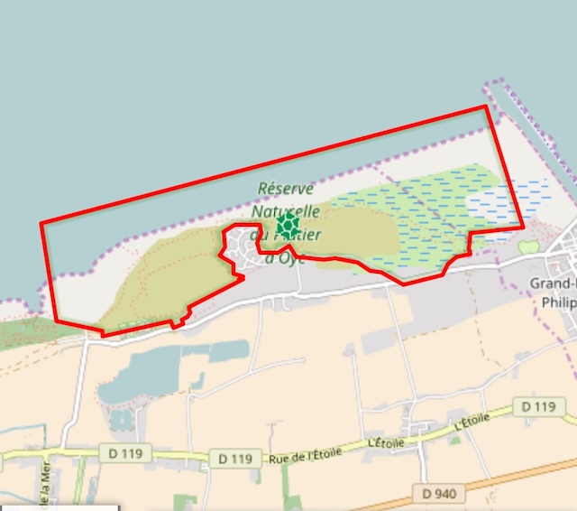 In station van Duinkerke de bus A genomen naar Gravelines daar nog eens overstappen aan halte Islandais , richting Grand Fort Philippe. Uitstappen aan halte Marchal. Over deze halte ligt er een publiek park ( is ook een parking voor auto’s) en daarachter start de Grand Route die dwars door het gebied loopt.